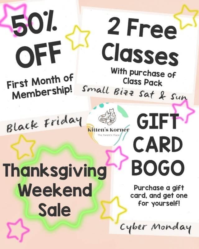 Welcome to Kitten’s Korner, The Parent’s Place in Mesa, AZ. Our creative indoor play and learning space is where parents and children connect, play, and grow together through community, classes, and open play.